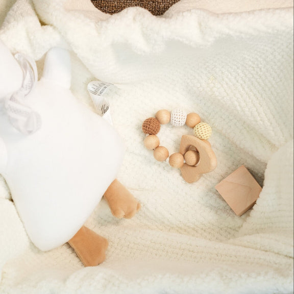 A tiny treasure for little hands. Crafted from smooth, natural wood with soft knitted textures, the Nestling Ring soothes, engage, and supports your baby’s early development.